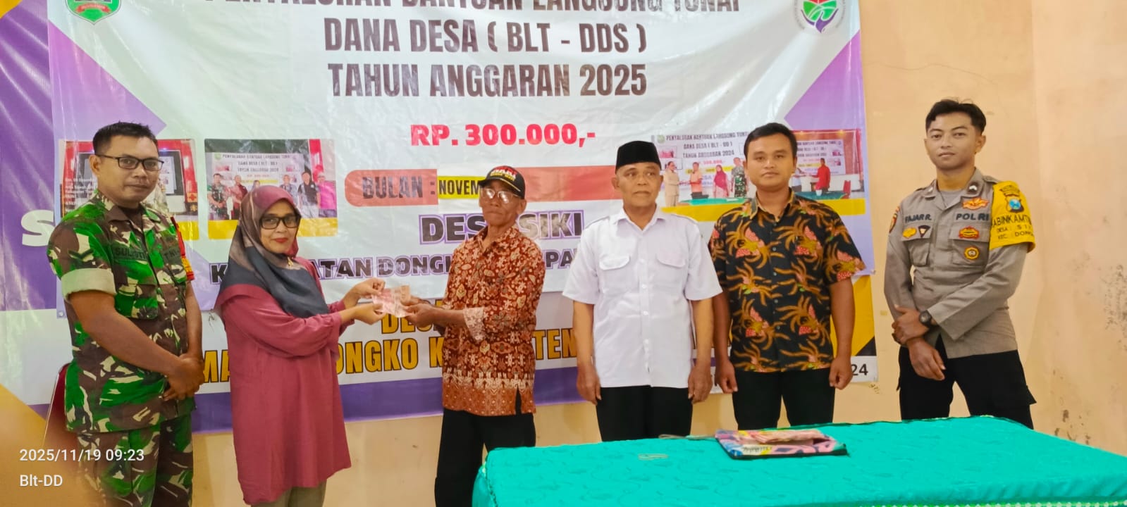 Penyaluran BLT-DD periode bulan November tahun 2025 telah disalurkan oleh Pemerintah Desa Siki kepada 40 KPM, yang setiap KPM menerima bantuan masing-masing sebesar Rp. 300.000 setiap bulan. Proses penyaluran BLT-DD berlangsung dengan tertib dan berjalan dengan lancar, diharapkan kepada keluarga penerima manfaat agar memaksimalkan penggunaan bantuan tersebut secara bijak (seperti untuk kebutuhan pokok/sembako). Melalui BLT-DD Pemerintah Desa Siki mengalokasikan dana untuk membantu warga desa dengan harapan dapat meningkatkan kesejahteraan KPM dan mendukung masyarakat kurang mampu secara finansial serta KPM dapat merasakan manfaat langsung dari program ini, sehingga dapat memperbaiki kondisi keuangan KPM dan meningkatkan daya beli di tingkat lokal.